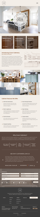 Homepage: Featured an overview of the cabinetry styles, quality materials, and trust-building elements like customer testimonials.